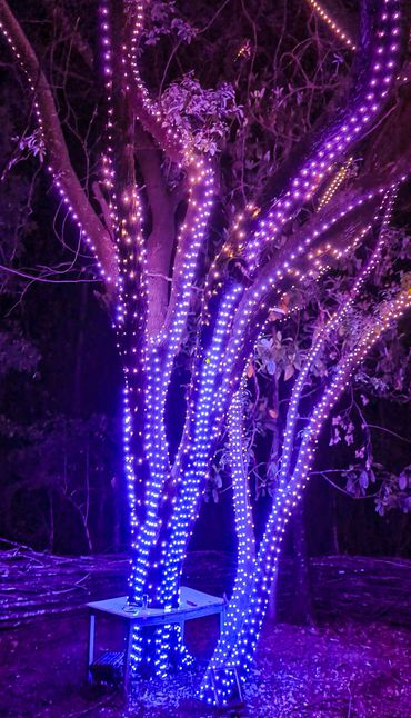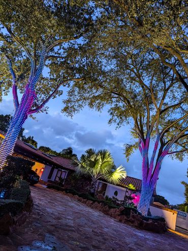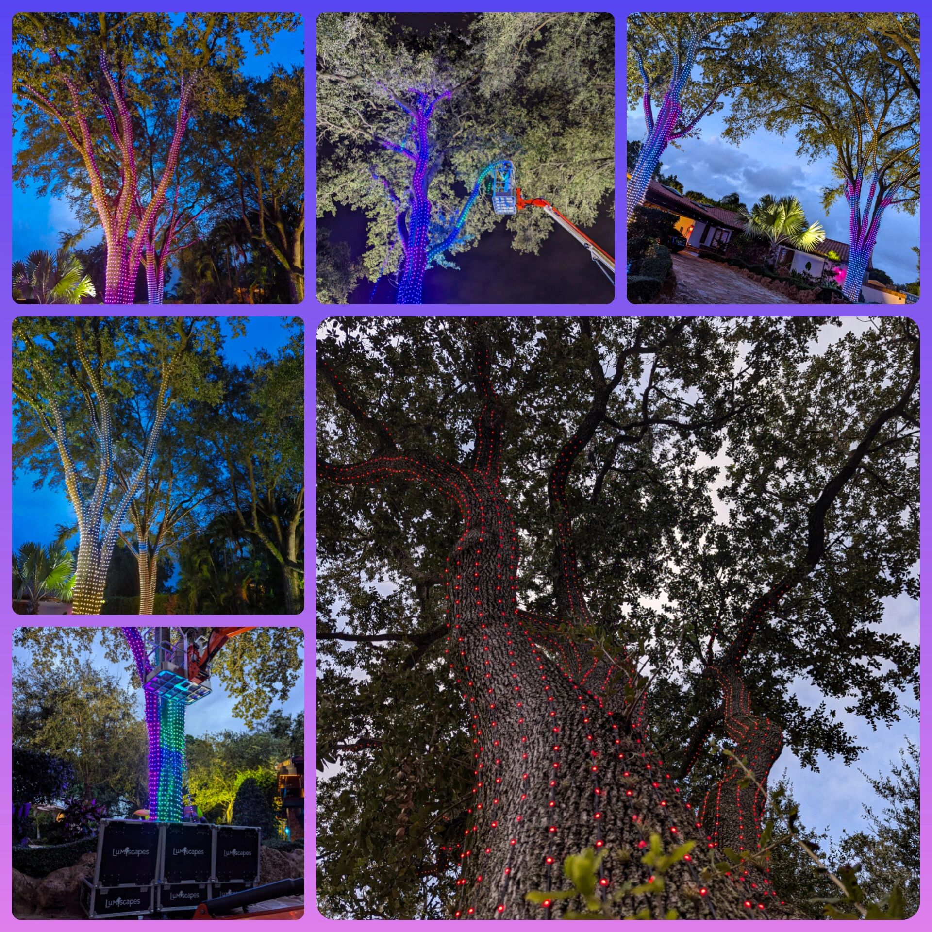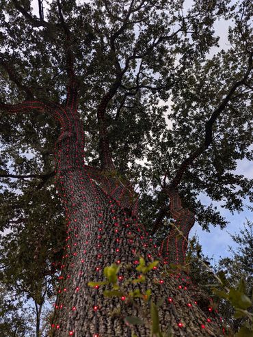 From the ground up—reaching heights of up to 60 feet—we carefully position our LED Reels, embedding them seamlessly into the tree structure to create the illusion that the lights are growing naturally with the tree.